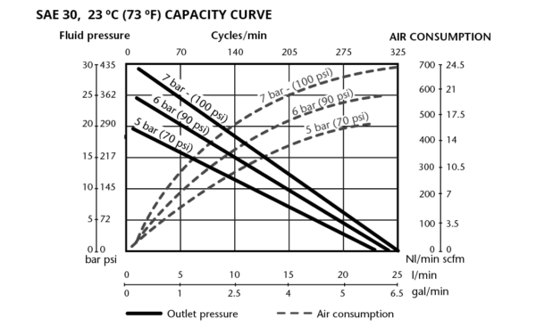 | Maximum outlet pressure | 50 bar (700 psi) |
